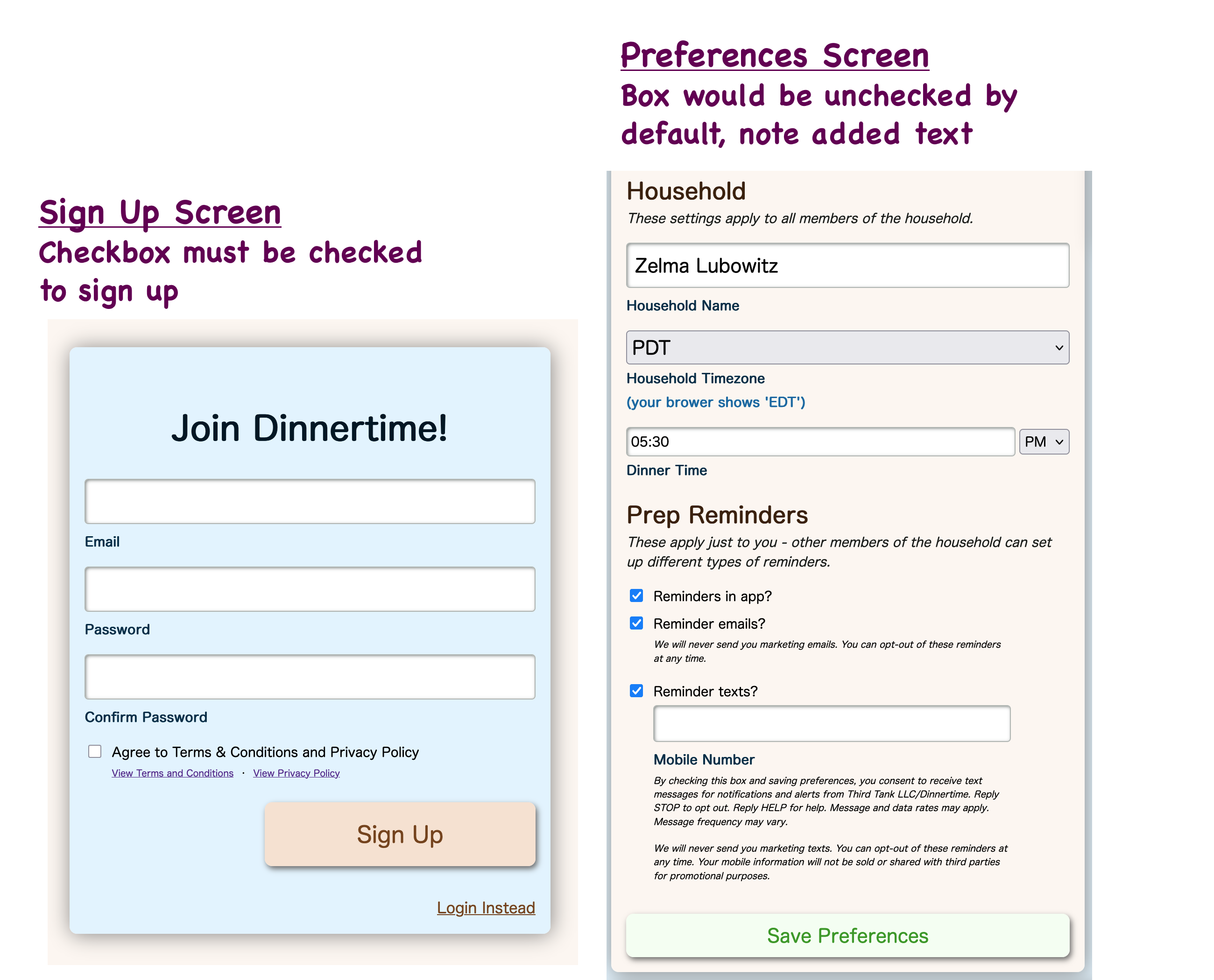 While the specific UI of setting up SMS reminders differs from app to app, all Third Tank LLC web sites and web apps will follow the same general procedures to make sure you are only getting the texts you have agreed to get.